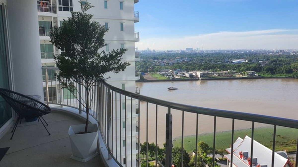 Condo for sale, corner room, Supalai Riva Grand Rama 3, size 128 sq m., view of the curve of the Chao Phraya River. Very beautiful